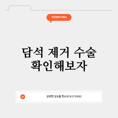 담석 제거 수술은 많은 이들에게 필요한 중요한 의료 절차입니다. 이 수술은 담석이라는 문제를 해결하기 위해 시행되며, 이로 인해 발생할 수 있는 여러 가지 합병증을 예방하는 데 도움이 됩니다. 담석 제거 수술 확인해보자라는 주제로 이 글을 통해 담석의 원인, 수술 방법, 회복 과정, 그리고 주의사항 등을 상세히 살펴보겠습니다. 담석 제거 수술은 단순한 절차처럼 보일 수 있지만, 그 과정에는 많은 고려사항이 필요합니다. 사람마다 건강 상태가 다르기 때문에, 수술의 필요성과 방법은 개별적으로 평가되어야 합니다. 따라서 담석 제거 수술 확인해보자라는 주제를 통해 여러분이 이 수술에 대해 더 깊이 이해하고 준비할 수 있도록 돕고자 합니다.