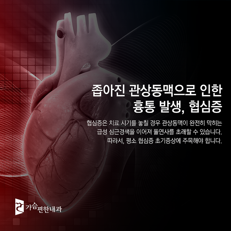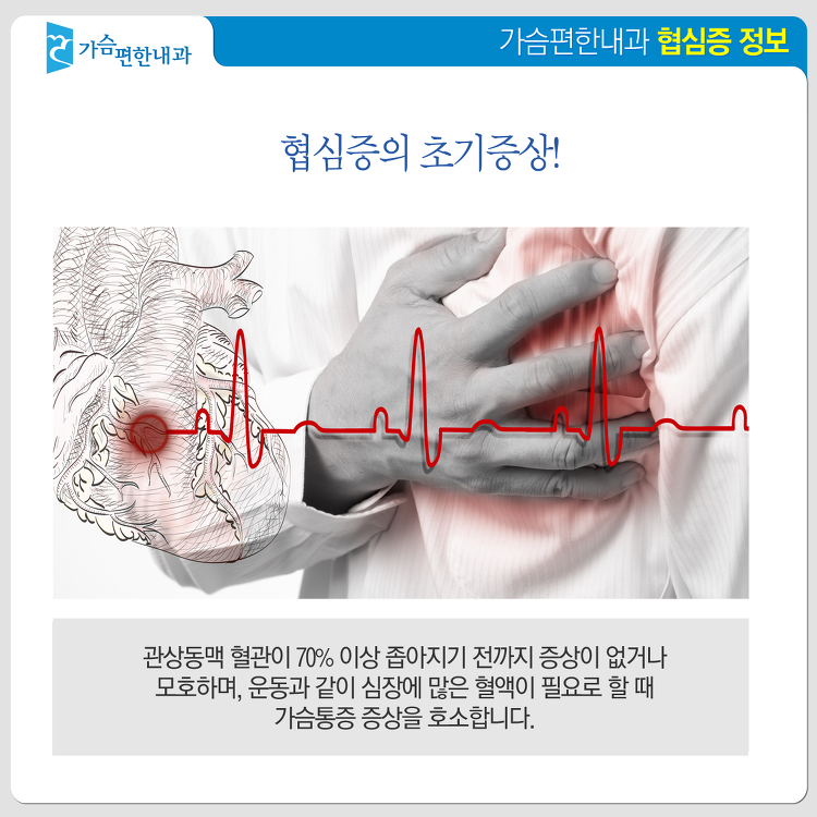 협심증은 조기 발견과 관리가 가장 중요합니다. 초기증상을 무시하고 방치하면 심근경색, 심부전 등 치명적인 결과를 초래할 수 있습니다. 가슴 통증, 호흡곤란, 피로감 등의 증상이 반복된다면 반드시 전문의를 찾아 상담받으세요.