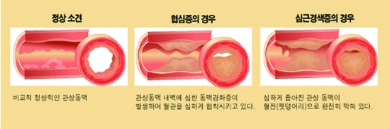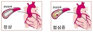 - 관상동맥에 콜레스테롤이 축적되어 동맥이 좁아지는 현상입니다.